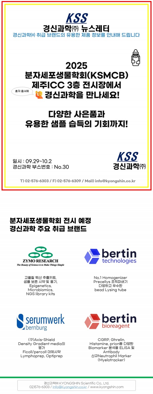 제주ICC에서 개최 예정인 분자세포생물학회(KSMCB)에서 경신과학(주)를 만나실 수 있습니다! 경신과학 주요 취급브랜드 제품정보와 각종 선물을 만나실 수 있습니다! 제주에서 만나요!